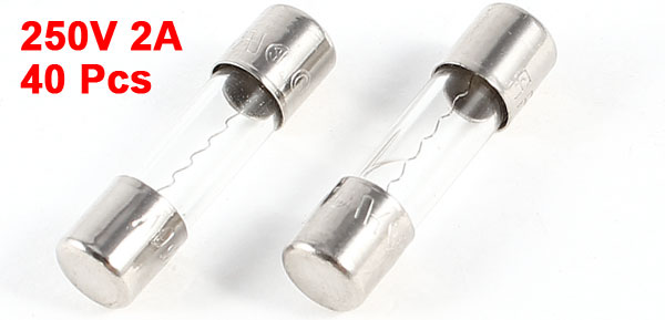 40 Pcs 250V 2Amp Fast Blow Type Glass Tube Fuses F2L250V 5mm x 20mm