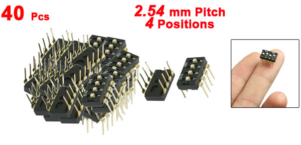 40 Pcs 2.54mm Pitch 4 Positions Slide Type DIP Switches