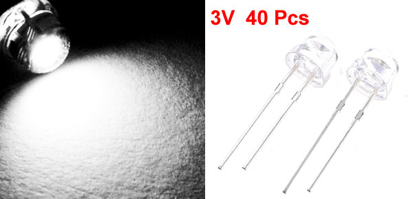 40 Pcs 3V 9mm Hat Dia 2 Pin LED Light Emitting Diode White