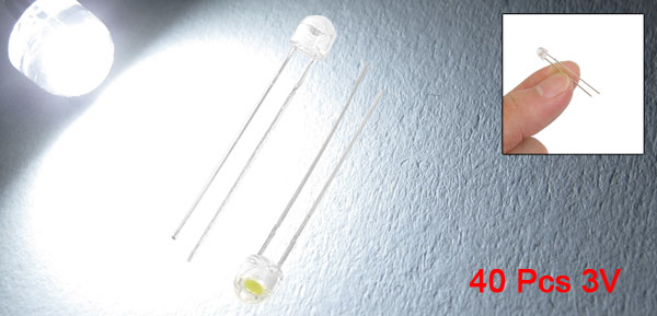 40 Pcs 3V White LED 5mm Round Head Light Emitting Diodes