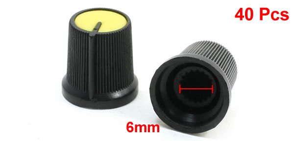40 Pcs 6mm 15/64" Shaft Dia. Nonslip Potentiometer Knobs Yellow Black