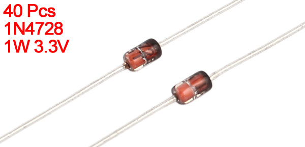Product Name Zener Diodes Model 1N4728 Package type DO-41 Type Axial Lead Rating Voltage 3.3V Power 1W Overall Size 60 x 2mm/2.4" x 0.08"(L*D) Weight 10g Package Content 40 x Zener Diodes - Reviews