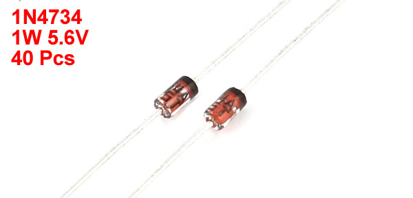 Product Name Zener Diodes Model 1N4734 Package Type DO-41 Type Axial Lead Rating Voltage 5.6V Power 1W Overall Size 60 x 2mm/2.4" x 0.08"(L*D) Weight 8g Package Content 40 x Zener Diodes - Reviews