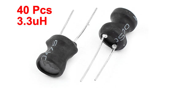 Product Name Power Inductor Main Material Metal Current 1A Inductance 3.3uH Body Size 8 x 10mm / 0.31" x 0.39" (D*H) Lead Diameter 0.5mm / 0.02" Color Black,Silver Tone Weight 72g Package Content 40 x Power Inductors - Reviews