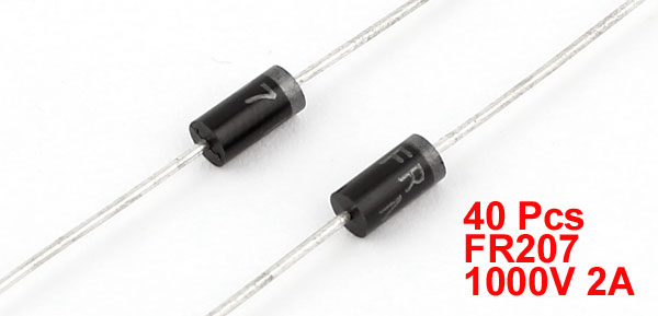 40 Pcs FR207 DO-15 Fast Recovery Rectifier Diodes 1000V 2A