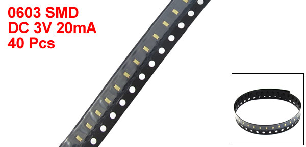 Product Name Light Emitting Diodes Diode Type 0603 SMD Forward Voltage DC 3V Forward Current 20mA Light Color White Weight 2g Package Content 40 x Light Emitting Diodes - Reviews