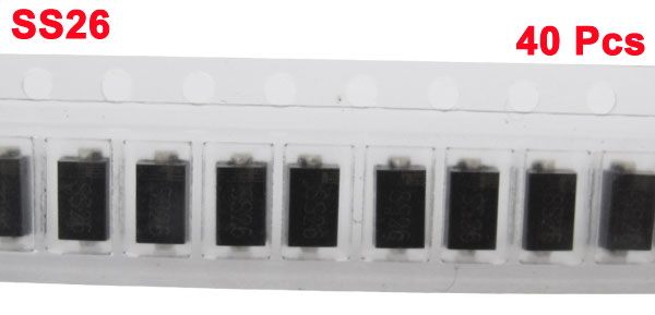 Product Name Schottky Barrier Rectifiers Diodes Model SS26 (RS260) Package Type DO-214AC Mount Type Surface Mount Peak Reverse Voltage 60V Average Forward Rectified Current2A Color Black Weight 4g Package Content 40 x Schottky Barrier Rectifiers Diodes - Reviews