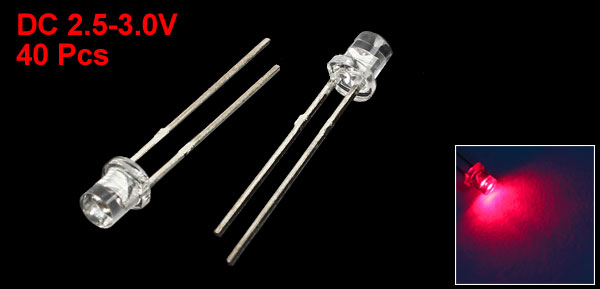 40 Pcs Super Bright 3mm Flat Head Red LED Lamp Light Emitting Diodes DC 2.5-3.0V