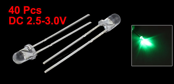 40 Pcs Super Bright 3mm Straw Hat Green LED Lamp Light Emitting Diode DC 2.5V-3V