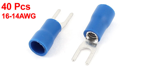 40 Pcs SV-2/3S 16-14AWG Blue Insulated Fork Spade Terminals Electrical Connector