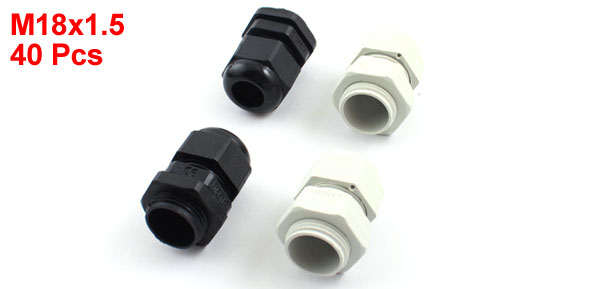 Product Name Cable Gland Model M18 Thread Size M18x1.5 Cable Range 5-10mm Thread Length 7mm / 0.27" Total Size 35 x 26mm / 1.3" x 1" (L*Max.D) Main Material Plastic Color Black, White Weight 321g Package Content 40 Pcs x Cable Glands - Reviews