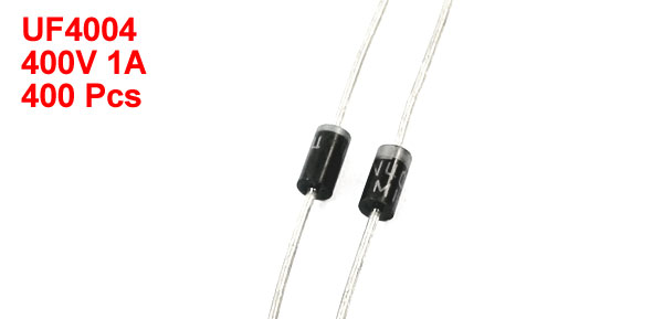 Product Name Super Fast Recovery Diodes Model UF4004 Max Repetitive Peak Reverse Voltage 400V Average Forward Current 1A Lead Size(Each Side) 0.7 x 27mm/0.08" x 1"(D*L) Body Dimension 2.5 x 5mm/0.1" x 0.2"(D*L) Color As Picture Shown Weight 115g Package Content 400Pcs(±2%) x Super Fast Recovery Diodes - Reviews