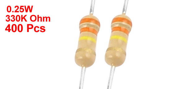 Product Name Carbon Film Resistors Power Rating 0.25W Resistance Tolerance ± 5% Resistance 330K Ohm Resistor Body Size 6 x 2mm / 0.24" x 0.08"(L*D) Total Length(Approx.) 58mm / 2.3" Color Brown Weight 48g Package Content 400±2% x Carbon Film Resistors - Reviews