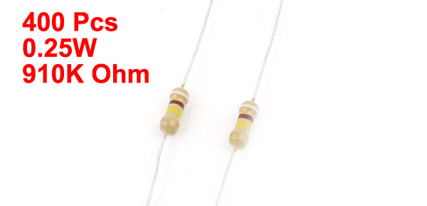 400 Pcs 910K Ohm 0.25W 5% Tolerance Axial Leads Type Carbon Film Resistors