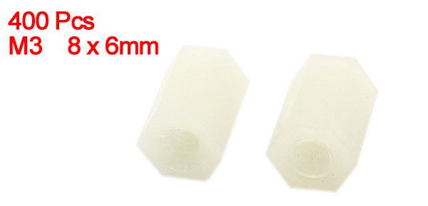 400 Pcs M3 x 8mm Nylon Insulation Hex Hexagonal Threaded Spacer Support