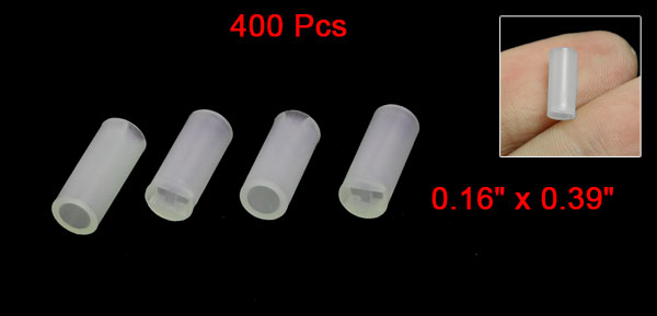 Product Name LED Spacers Quantity 400±2% Inner Hole Diameter 3mm Hole Pitch(Approx.) 2mm Total Size 4 x 10mm/ 0.16" x 0.39" (D*L) Material Nylon Color White Net Weight 36g Package Content 400 x LED Spacers - Reviews