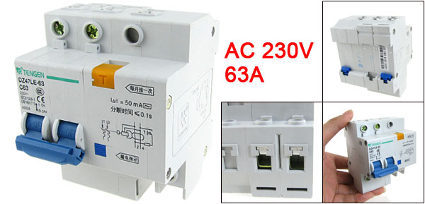 Product Name Earth Leakage Circuit Breaker Model No. DZ47LE-32 C63 Material Plastic, Electric Components Rated Voltage AC 230V Rated Current 63A Breaking Capacity 4000A Rated Residual Operating Current 0.03A (30mA) Rated Residual Operating Time < 0.1S Total Size (Approx.) 93 x 71 x 65mm/ 3.7" x 2.8" x 2.6" (L*W*H) Number of Poles 2 Neutral +N Mount Type DIN Rail Color As Picture Shown Weight 322g Package Content 1 x Earth Leakage Circuit Breaker - Reviews