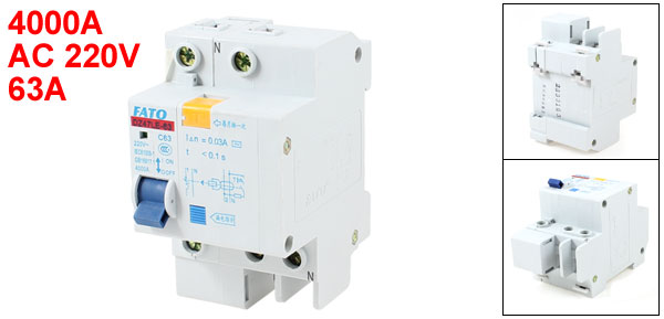 Product Name Circuit Breaker Model Number DZ47LE-63 C63 Rated Circuit Breaking Capacity 4000A Rated Voltage AC 220V Rated Current 63A Frequency 50Hz Poles 1P+N Mounting Type 35mm DIN Rail Mount Overall Size (Approx) 9.3 x 5.3 x 6.5cm/3.7" x 2.1" x 2.6"(L*W*H ) Material Plastic, Electric Components Color As Picture Shown Weight 519g Package Content 1 x Circuit Breaker