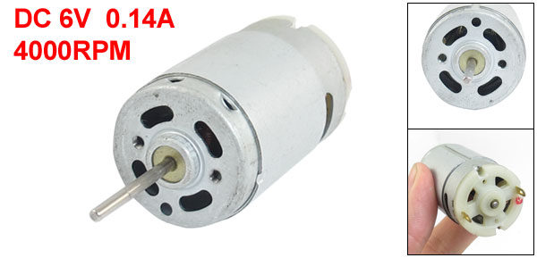 Product Name DC Micro Motor Model 390 Type Rated Voltage DC 6V Speed(no load) 4000RPM Current 0.14A Body Size 4.5 x 2.9 cm / 1.8" x 1.1" (L*D) Shaft Diameter 2.3mm / 0.01" Total Length 76mm / 3" Main Color Silver Tone Material Metal, Plastic Weight 99g Package 1 x DC Micro Motor - Reviews