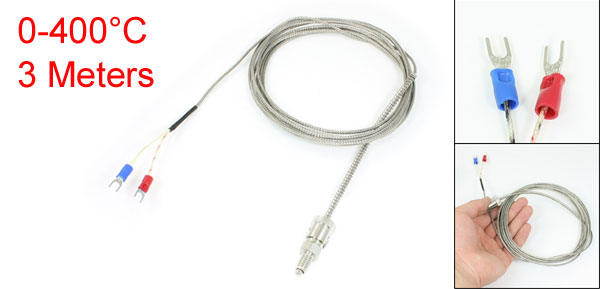 Product Name Compression Spring Thermocouple Transfer Type K Temperature Range 0-400°C Total Length 3 meters/ 9.8Ft Thread Diameter 10mm / 0.4" Fork Terminal Spacing 4.5mm / 0.17" Probe Length 10mm/ 0.4" External Shielding Metal Shield Color Silver Tone Weight 60g Package Content 1 x Compression Spring Thermocouple - Reviews