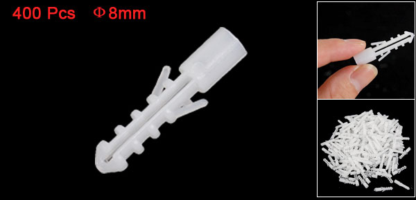 400pcs 8mm Dia Plastic Expandable Nail Wall Plugs White
