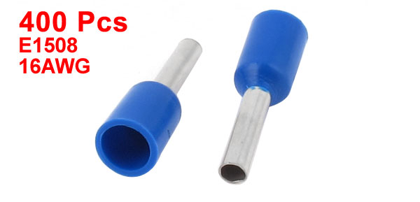 400Pcs E1508 16AWG Insulated Ferrule Pin Cord End Terminal Crimp Connector Blue