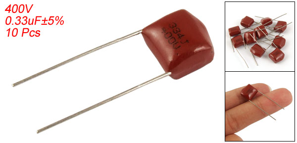 Product Name Metallized Polypropylene Film Capacitor Dielectric Material Metallized Polypropylene Film Withstand Voltage 400V Capacitance 0.33uF Capacitance Tolerance ±5% Lead Spacing 10mm / 0.39" Total Size (Each) 34 x 11 x 6.5mm / 1.3" x 0.43" x 0.26" (L*W*T) Weight 12g Color As Picture Shown Package Content 10 x Metallized Polypropylene Film Capacitors - Reviews