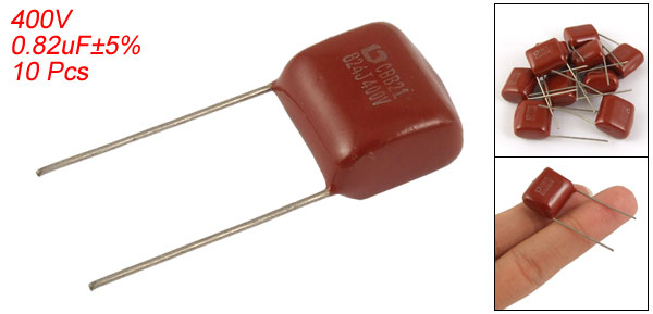 Product Name Metallized Polypropylene Film Capacitor Model CBB21 Dielectric Material Metallized Polypropylene Film Withstand Voltage 400V Capacitance 0.82uF Capacitance Tolerance ±5% Lead Spacing 15mm / 0.59" Total Size (Each) 43 x 16 x 9mm / 1.69" x 0.63" x 0.35" (L*W*T) Weight 28g Color As Picture Shown Package Content 10 x Metallized Polypropylene Film Capacitors - Reviews