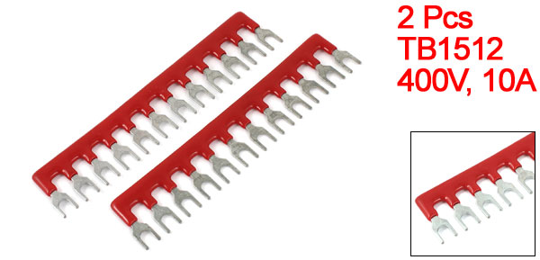 Product Name Terminal Stripe Model TB1512 Rated Value 400V, 10A Positions 12 Design Fork Type Material PVC, Metal Color Silver Tone, Red Inside Width 3.8mm/0.15" Outside Width 6.3mm/0.24" Pin Pitch 2.7mm/0.1" Fork Total Width 103mm/ 4.1" Sleeve Total Width 98mm/ 3.8" Total Height 21mm/ 0.8" Weight 15g Package Content 2 x Terminal Stripe - Reviews