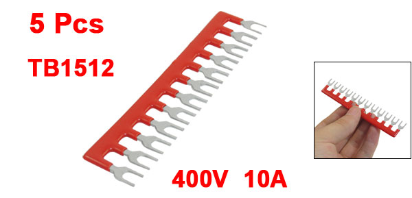 400V 10A 12 Postions Red Pre Insulated Fork Terminal Stripes 5x