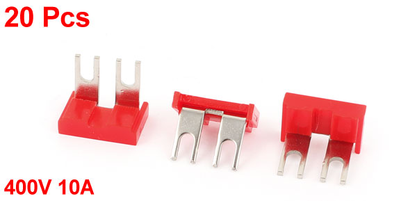400V 10A 2 Postions Pre Insulated Terminal Jumper Strip Fork Red 20pcs