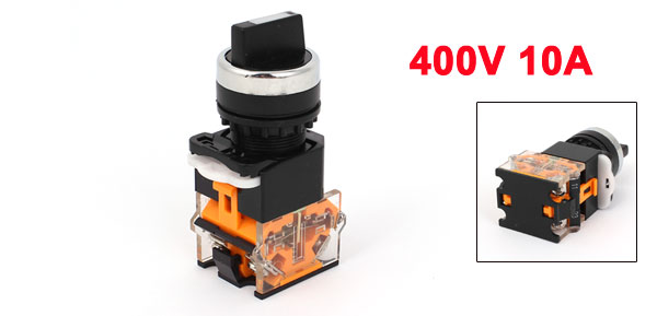 400V 10A 3 Position DPST Panel Mounted Rotary Selector Latching Button Switch