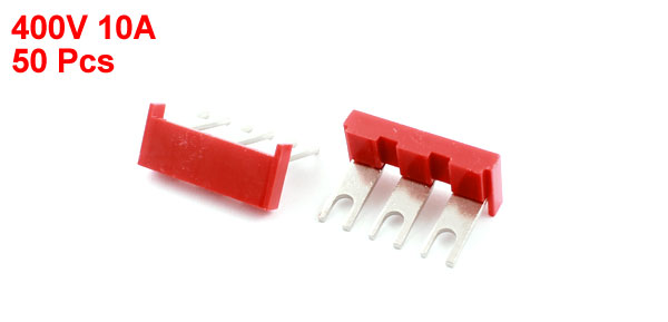 400V 10A 3-Position Red Pre Insulated Electrical Terminal Jumper Strip x 50