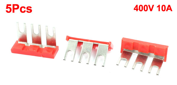 400V 10A 3 Postions Pre Insulated Connector Terminal Jumper Strip Fork Red 5Pcs