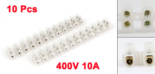 Product Name Plastic Terminal Block Material(external) Plastic , Metal Color Clear Type 12 Postions , 2 Rows Rated Value 400V , 10A Cable Entry Capacity 10mm2 Size 11 x 2 x 1.5cm / 4.3" x 0.8" x 0.6"(L*W*H) Weight 157g Package Content 10 x Plastic Terminal Block - Reviews