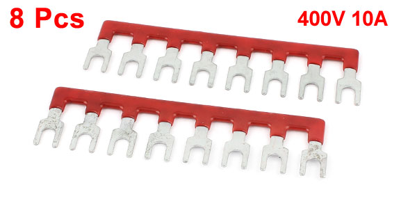 400V 10A TB2508 8P Fork Type Terminal Block Strip Connector Red 8pcs