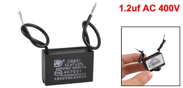 Product Name Motor Capacitor Housing Material Plastic Dielectric Material Metalized Polypropylene Model CBB61 Capacitance 12uF Tolerance +/-5% Rated Voltage 400VAC Frequency 50/60Hz Temperature Range 40/70/21 Body Size 3.5 x 2.3 x 2.5cm / 1.4" x 0.91" x 0.98" (L* W * T) Wire Length(Approx.) 10cm /3.9" Color Black Weight 36g Package Content 1 x Motor Capacitor - Reviews