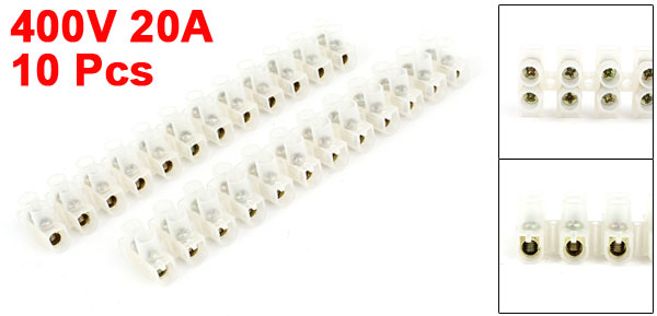 Product Name Plastic Terminal Block Material(external) Plastic , Metal Color Clear Type 12 Postions , 2 Rows Rated Value 400V , 20A Cable Entry Capacity 14mm2 Size 12 x 2 x 1.5cm / 5" x 0.8" x 0.6"(L*W*H) Weight 250g Package Content 10 x Plastic Terminal Block - Reviews