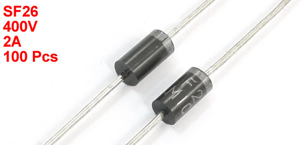 Product Name Super Fast Recovery Diodes Model SF26 Max Repetitive Peak Reverse Voltage 400V Average Forward Current 2A Lead Size(Each Side) 0.7 x 26mm/0.01" x 1"(D*L) Body Dimension 3 x 6mm/0.12" x 0.24"(D*L) Color As Picture Shown Weight 25g Package Content 100Pcs(±2%) x Super Fast Recovery Diodes - Reviews