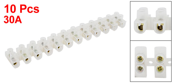 Product Name Plastic Terminal Block Material(external) Plastic , Metal Color Clear Type 12 Postions , 2 Rows Rated Value 400V , 30A Cable Entry Capacity 16mm2 Size 15.5 x 3 x 1.5cm / 6" x 1.2" x 0.6"(L*W*H) Weight 284g Package Content 10 x Plastic Terminal Block - Reviews