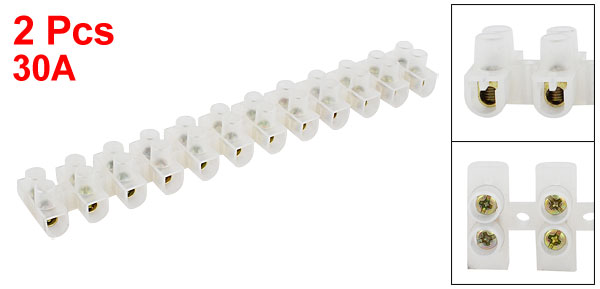 Product Name Plastic Terminal Block Material(external) Plastic , Metal Color Clear Type 12 Postions , 2 Rows Rated Value 400V , 30A Cable Entry Capacity 16mm2 Size 15.5 x 3 x 1.5cm / 6" x 1.2" x 0.6"(L*W*H) Weight 60g Package Content 2 x Plastic Terminal Block - Reviews