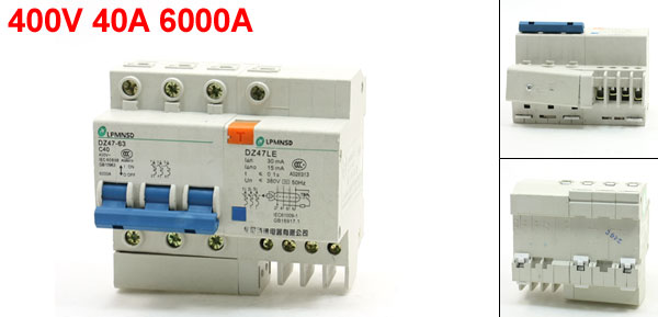 400V 40A ON/OFF DZ47-63 3P Earth Leakage Circuit Breaker 6000A