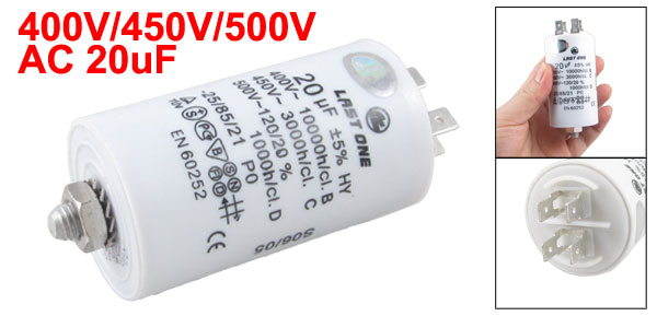 400V/450V/500VAC 20uF 8mm Male Dia. Motor Capacitor for Washing Machine