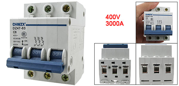Product Name Circuit Breaker Model DZ47-63 C6 Material Plastic, Electric Components Shell Frame Size Rated Current 63A Rated Voltage AC 400V Rated Circuit Breaking Capacity 6000A Rated Current 6A Total Size (Approx.) 7.7 x 6.5 x 5.2cm / 3" x 2.5" x 2" (L * W * T ) Number of Poles 3 Color As Picture Shown Weight 259g Package Content 1 x Circuit Breaker - Reviews