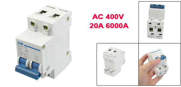 Product Name Circuit Breaker Model DZ47-63 C20 Number of Poles 2P Rated Voltage AC 400V Rated Circuit Breaking Capacity 6000A Rated Current 20A Mounting Type DIN Rail Total Size (Approx.) 9.4 x 3.5 x 7.1cm/ 3.7" x 1.4" x 2.8" (L*W*H) Material Plastic, Electric Components Color As Picture Shown Weight 151g Package Content 1 x Circuit Breaker - Reviews