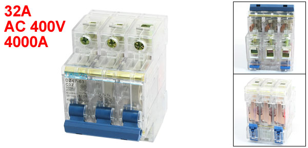 Product Name Circuit Breaker Model DZ47-63 C32 Rated Current 32A Rated Voltage AC 400V Rated Circuit Breaking Capacity 4000A Number of Poles 3 Mount Type 35mm DIN Rail Total Size (Approx.) 77 x 55 x 75mm/ 3.1" x 2.2" x 3" (L*W*H) Material Plastic, Electric Components Weight 225g Package Content 1 x Circuit Breaker - Reviews