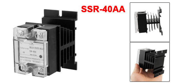 Product Name Solid State Relay + Heat Sink Model SSR-40AA Material Metal, Aluminum, Plastic Rated Load Current 40A Input AC 150-350V Output AC 24-480V Total Size (Approx.) 8 x 5 x 8cm / 3.1" x 1.9" x 3.1" (L * W * H ) Color Black Weight 190g Package Content 1 x Solid State Relay