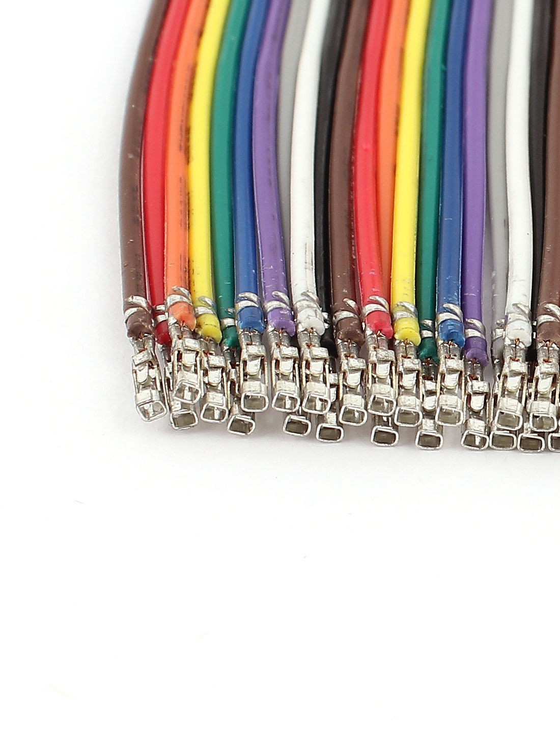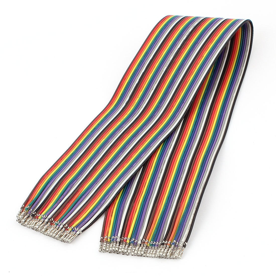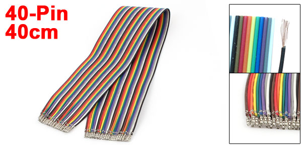 Details40cm 40 Way 40-Pin Female to Female Breadboard Jumper Wire for Arduino Pi  Main Color Rainbow Color Net Weight 52g Fit for Female Jumper Wire Housing Brand DMiotech Total Length 40cm/15.7" Country of Manufacture CHINA Package Content 1 x 40 Pin Jumper Wire Type Female to Female Material Plastic, Metal Wire Diameter 1.3mm 16AWG Total Width 55mm/2.2"