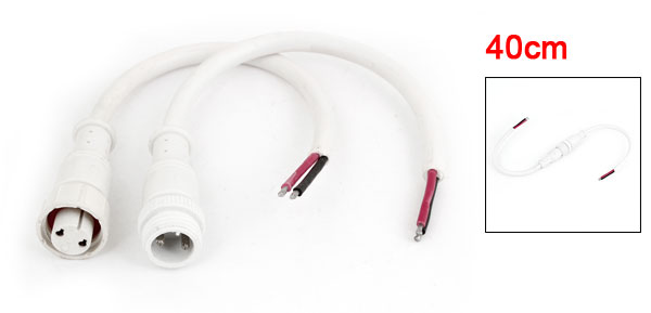 40cm LED Strips 2-Pin Male Female Plug Waterproof Connector Cable White