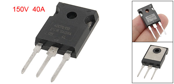 Product Name Schottky Rectifier Diode Model No. 40CPQ100 Drain Source Voltage 150V Drain Current 40A Mounting Hole Diameter 3.5mm / 0.138" Pin Size 14 x 5mm / 0.55" x 0.2" ( L* Pitch) Total Size 34 x 16 x 5mm / 1.3" x 0.63" x 0.2" (L*W*H) Weight 6g Package 1 x Schottky Rectifier Diode - Reviews